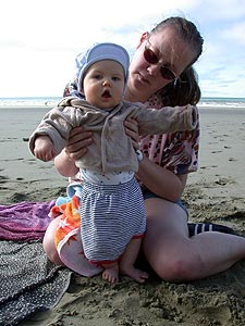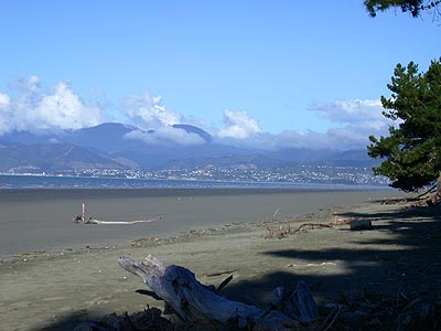 für Modems geeignet. Also muß erstmal ein anderes Kabel her, mal sehen wanns endlich klappt. Der Wetterbericht hat für heute - mal wieder - Regen vorhergesagt. Nachts schien das auch noch richtig. Es regnete so heftig, daß wir davon wach wurden. Morgens war es dann sehr nebelig aber nach kurzer Zeit wich der Nebel der Sonne. Es sollte ein wunderschöner Tag werden. Wir fuhren von St.Arnaud nach Nelson. Nelson ist eine für neuseeländische Verhältnisse große Stadt. Von Nelson ging es weiter nach Upper Moutere. Hier sind auch die Verleiher unseres Wohnmobils zu Hause. Upper Moutere hieß früher einmal Neudorf oder St.Pauli Dorf. Im 19.Jahrhundert wurden hier die ersten Deutschen angesiedelt. Sie wurden in Hamburg angeworben, sich in Neuseeland niederzulassen. Wir übernachten auf dem Gelände von Kiwi Campervans. Vorher machen wir aber noch einen Abstecher zu Rabbit Island. Einem sehr schönen Naherholungsgebiet mit langem Strand. Hier mach Joshua zum ersten Mal Bekanntschaft mit Meerwasser und Sand - und stellt fest, daß beides nicht besonders gut schmeckt. |