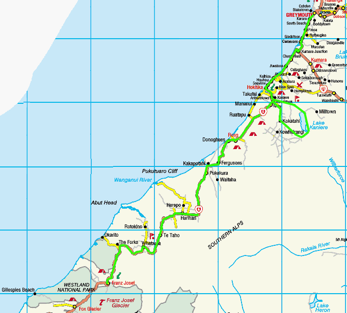 | einleitung | Greymouth - Hokitika - Lake Kaniere - Franz Josef | |||