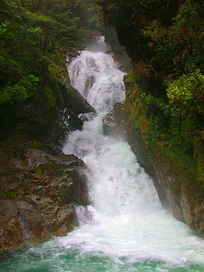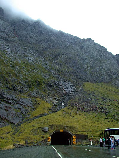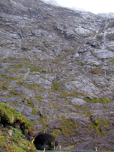 ![]() Im abschüssigen Homertunnel. Bevor der Tunnel in den 60er Jahren erbaut wurde, gab es außer dem Milford Track keine Landverbindung zum Milford Sound. |