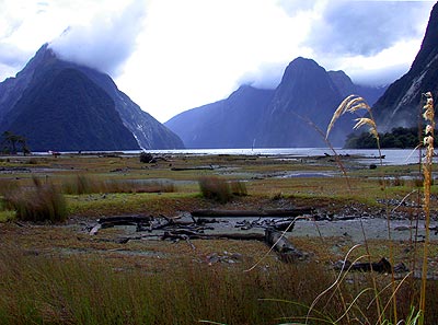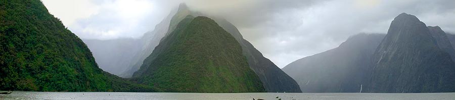 ![]() Milford Sound mit Mitre Peak links in den Wolken |