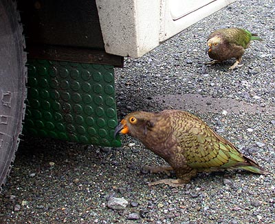 ![]() Keas haben eine Vorliebe für Gummi. Besonders Gummidichtungen und Scheibenwischer zerstören sie gerne. |
