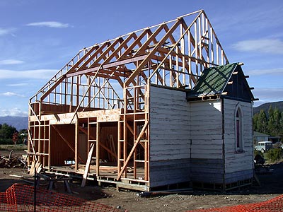 ![]() Kirche im Rohbau - in Manapouri. In Wirklichkeit handelt es sich aber um ein zu leasendes Gebäude. Hier entsteht wohl eine etwas andere Ferienwohnung. |