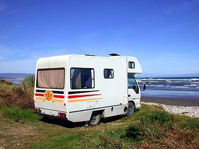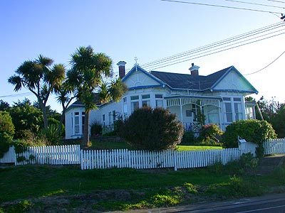 es dort gerade und es ist 6 Grad kalt. Lake Monowai Der See ist über eine acht Kilometer lange Schotterpiste zu erreichen und liegt im Fjordland-Nationalpark. An dem See kann man eine einstündige Wanderung zu einem schönen Ausblick über den See machen. Der Weg führt durch einen Wald, dessen Boden mit Moos bewachsen ist. Bei dem Spaziergang durch den Wald muß ich an die Dreharbeiten zum Herr der Ringe denken. Hier, auf diesem Weg, könnte ich mir vorstellen, sind die Gefährten gegangen. Clifden - Orepuki - Riverton - Invercargill Bei Clifden fahren wir auf den Highway 99. Wir fahren zu den Clifden Caves, eine Kalksteinhöhle. Leider sind die Gänge schmal und niedrig. Ich bin nur ein paar Meter in die Höhle gegangen, die Gänge sind sehr matschig und man kann leicht ausrutschen. In Clifden gibt es außerdem die älteste Hängebrücke Neuseelands. Sie wurde 1899 gebaut und ist heute ein Denkmal. In Tuatapere, dem nächsten größeren Ort, fahren wir zum Blue Cliffs Beach. Auch dieser ist nur über eine Schotterpiste zu erreichen und sollte, laut Reiseführer, einen Besuch lohnen. Leider konnten wir dies nicht feststellen und so fahren wir nach einer kurzen Sandwich-Pause weiter. Der nächste Ort heißt Orepuki und ich erwähne ihn nur, weil er ein Beispiel für diese südlichste und sehr abgelegene Ecke Neuseelands ist. Der Ort stirbt, alle Geschäfte sind geschlossen und verlassen, nur die Dorfkneipe existiert noch. Früher führte noch eine Eisenbahnlinie aus Invercargill über Riverton durch den Ort. Heute ist hier nichts mehr. Als nächstes erreichen wir McCracken's Rest, einem Aussichtspunkt von welchem man eine sehr schöne Sicht über den Südpazifik hat. Außerdem halten wir noch an einem kleinen Strand, wo ich auf einen Goldsucher stoße. Er filtert das Wasser eines dort ins Meer fließenden Baches über eine Plastikrutsche. In den Rillen bleiben die winzigen Goldkörner hängen. Er sagt es sei eine billige und effektive Methode, Gold zu schürfen. Der nächste Ort heißt Riverton. Es ist die älteste Siedlung hier im Süden und war früher ebenfalls durch eine Eisenbahnlinie mit Invercargill verbunden. Noch 1999 konnte man die Reste einer großen hölzernen Eisenbahnbrücke betrachten. Heute ist davon nichts mehr zu sehen. Bis Invercargill sind es noch 36 Kilometer. Invercargill ist die größte Stadt hier im Süden. Wir fahren weiter nach Oreti Beach zum Campingplatz. |