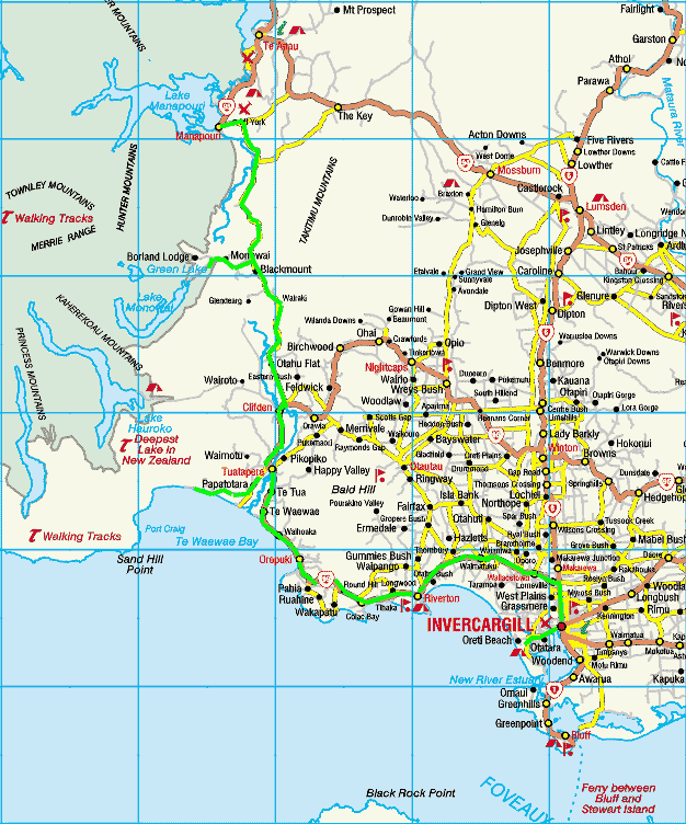 | einleitung | Manapouri - Lake Monowai - Riverton - Invercargill - Oreti Beach | |||