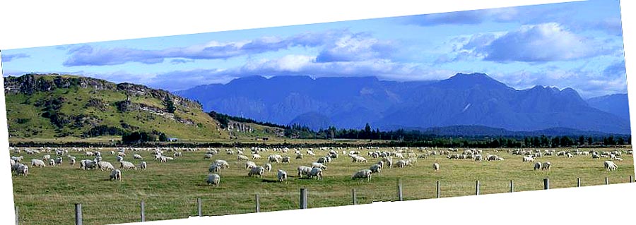 ![]() Schafe, Schafe, Schafe - sind das Markenzeichen dieser ganz südlichen Region Neuseelands |
