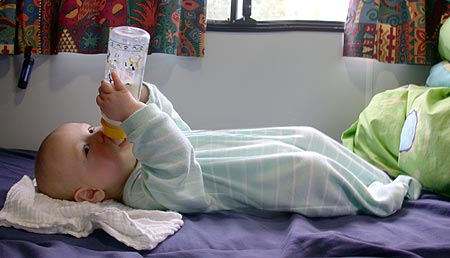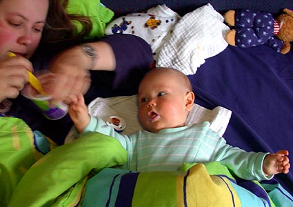 ![]() ...dann gibts die zweite Frühstücksmilch (die erste gabs schon bei Mama)... |