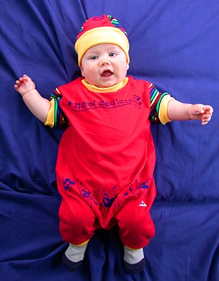 ![]() ...und zum Schluß noch den nigelnagelneuen Neuseeland-Strampler angezogen |