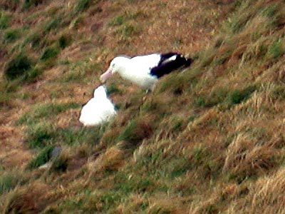 ![]() Königsalbatross füttert Küken - Aufnahme aus großer Entfernung durch Glasscheibe |