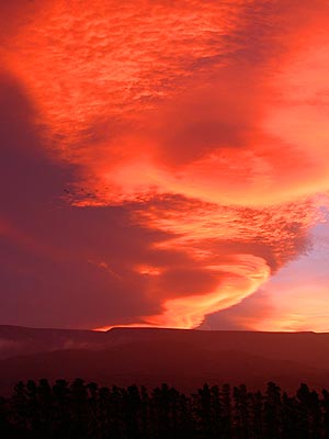 fahren an das Ende der Penisula zum Taiaroa Head. Taiaroa Head - Königsalbatrosse Hier findet sich die einzige Vogelkolonie von Königsalbatrossen auf dem Festland Neuseelands. Normalerweise bevorzugen diese Vögel entlegene kleine Inseln. Die Tiere verbringen die meiste Zeit ihres Lebens auf dem Meer und kommen zur Paarung und zum Brüten an Land. Sie folgen dem südpolaren Westwind, der sie alle zwei Jahre hierher zurückbringt. Die Tiere haben ein Flügelspannweite von bis zu drei Metern! Dieses Jahr haben fünf Küken bisher überlebt. Sie schlüpften Ende Januar und werden noch bis September im Nest behütet. Dann verlassen sie nach einer Vielzahl von Flugversuchen das Nest und verbringen die nächsten drei bis sechs Jahre auf hoher See. Leider ist es als wir ankommen sehr bewölkt und extrem windig. Aber wir haben das große Glück, nicht nur die Nester mit den Kücken von einem Beobachtungsstand aus einsehen zu können. Nochdazu können wir beobachten, wie ein Albatross sein Kücken füttert und dann majestetisch abhebt um davonzugleiten um neues Futter heranzuschaffen. Der Vogel wird jetzt den ganzen Tag über dem Meer verbringen. Mehr zu dieser Albatross-Kolonie ist unter www.albatrosses.com zu finden. Wir fahren nun nach Dunedin zurück und leider wird es bis zum Abend bedeckt bleiben. In Dunedin fahren wir noch zur Baldwin Street, der steilsten Straße der Welt. Natürlich versuchen wir nicht, sie mit dem Wohnmobil herauf zu fahren, schließlich haben wir schon auf Paßstraßen im Gebirge Schwierigkeiten. Nun fahren wir neunzig Kilometer nach Moeraki. Hier gibt es die Moeraki Boulder zu bestaunen. Moeraki Boulder Diese Steinkugeln wurden von der Brandung aus dem Lehmboden freigespült. Geologisch handelt es sich um Septarien oder Mergelkonkretionen. Sie wurden im Schlammton der sie umgab rundgeformt. Dieser Vorgang begann vor ca. 60 Millionen Jahren. Zu jener Zeit befand sich die Gegend noch unter dem Ozean. Schlammiges Sediment und Reste von Pflanzen und Muscheln sammelten sich auf dem Meeresboden und mit dem Anwachsen der Schlammschichten traten chemische Veränderungen in den feuchten Anlagerungen auf und die Konkretionen nahmen nach und nach im Schlamm Gestalt an. Vor etwa 15 Millionen Jahren hoben sich der Schlammton und anderes Gestein über den Meeresspiegel. Eigentlich hatten wir vor, hier zu verweilen. Zum Einen wollten wir die Ebbe abwarten, damit man die Boulder besser erreichen und ansehen kann. Allerding war nicht abzusehen, daß das Wetter sich bessern würde - und man somit schönere Fotos machen könnte. Außerdem würde erst mit Eintreten der Dämmerung Ebbe sein - und ohne Sonne bei bedecktem Himmel hätte man ohnehin nichts gesehen. Also entscheiden wir uns, weiterzufahren. Da die Küstenstrecke zwischen hier und Christchurch nicht besonders schön ist, wir aber auch nicht mehr viel Zeit haben, enscheiden wir, noch 150 km ins Gebirge zu fahren. Das heißt, daß wir erst gegen 20 Uhr am Campingplatz in Twizel sein werden. Doch es hat sich schon jetzt gelohnt. Während es sich an der Küste mehr und mehr zuzog, hatten wir im Gebirge einen fantastischen Sonneuntergang mit überwältigenden Wolkenformationen am Himmel. Leider können die Fotos dies nur unzureichend wiedergeben. Morgen werden wir hoffentlich noch einen schönen Tag an den Seen Pukaki und Tekapo haben. Danach ist der Urlaub leider schon vorbei. Dies hier werden also die letzten Zeilen von Unterwegs sein, den Rest berichte ich, wenn wir wieder zu Hause sind. |